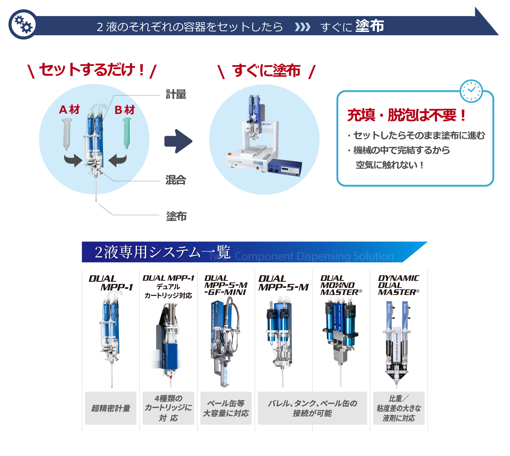 - 不需要混音部(混音器)的类型。建议使用反应性2液粘合剂。