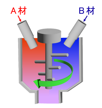适合粘度和混合比率差大的材料的混合方式。可按体积和重量设定混合比。