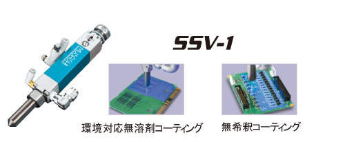 本公司发布了高粘度对应喷雾胶阀“SSV-1”。这个产品具备将液体和气体混合雾化的技术,因此,即使是在以往的涂层胶阀无法涂抹的高粘度液剂,也可以薄而广泛地涂抹。