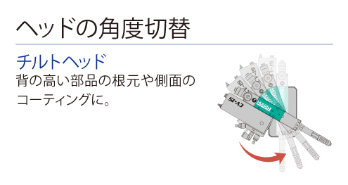 近年来,随着IoT和AI的发展,高速信息处理进行高性能大型实装零件增加了。由于这样的零件的大型化和一张基板所要求的机能的多样化,基板自身也有大型化的倾向。在大型零件的涂层中,特别是高个子零件在根部的涂层可能会变得困难,但是本公司提供应对这些课题的产品和配件。