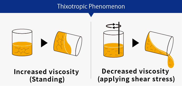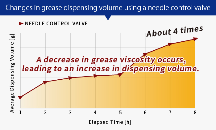 润滑油和粘合剂不同,不会固化,所以粘度容易被认为是难以改变的液剂。但是,很多润滑脂从静止状态转移到流动状态,具有粘性下降的性质(奇克索特洛比现象)。即使吐出条件是固定的,但是由于粘性的变化,吐出量也会发生变化。