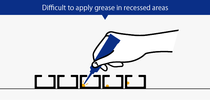 涂抹润滑脂以平滑零件之间的滑动。润滑油量过多的话,会材料的节省和成本增加。相反,润滑油量过少的话,开关等的操作感会发生变化,也会成为产品故障的原因。但是,与粘合剂不同,因为不是固定零件之间的东西,所以设备投资的重要性也会被忽视。